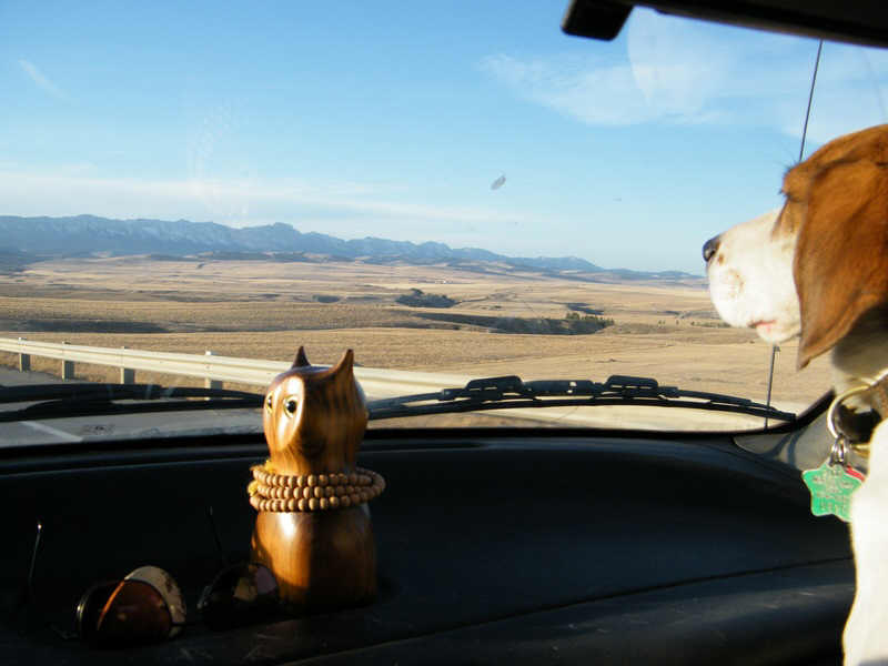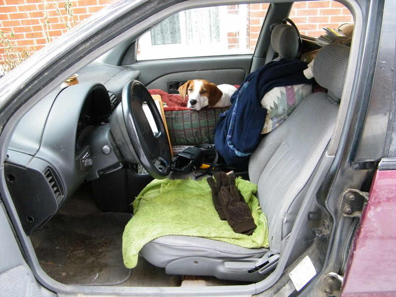 Brandy is NOT going to be left behind, so here she is just prior to departure from North Bay. I drove a 1995 Saturn with 210k km, packed full of 'essentials'. The trip would be six days and five nights (motels). |